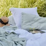 100% Linen. Duvets and Shams backed with 100% Cotton Percale. Made to Order in Portugal.
