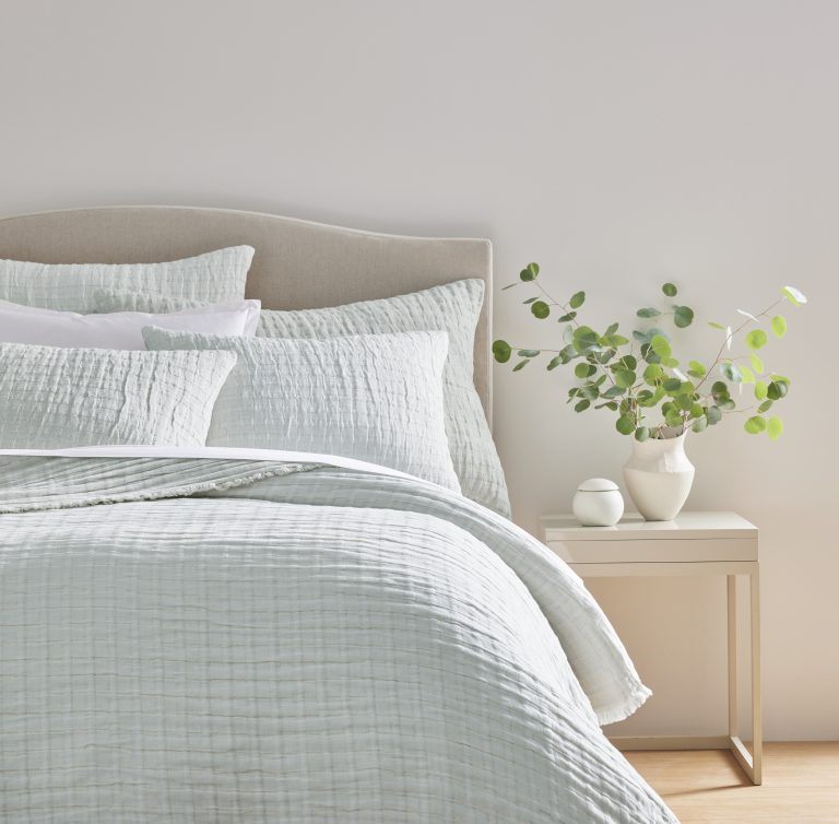 Devon coverlets and throws are woven from a cotton-linen blend for exceptional color depth and lightweight comfort. Each piece is fully reversible for versatile styling. Throws and coverlets are finished with a delicate eyelash fringe, and shams feature a hidden zipper closure for a refined look. Stocked in our Hudson, NY warehouse.