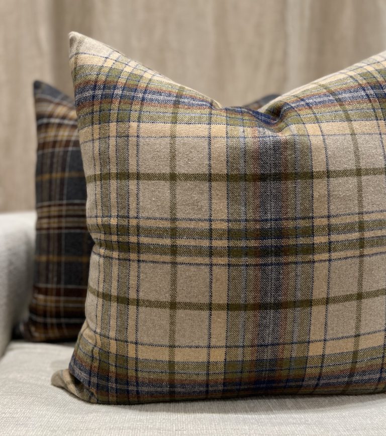 Durrell is a traditional wool plaid, but is made from recycled wool and offered in 2 wonderful colorations: Pebble and Saddle. As one of our fashion fabrics, Durrell can be purchased by the yard, or made to order products like duvet covers, shams and decorative pillows. Production time is about 4-6 weeks. Made in the USA.