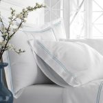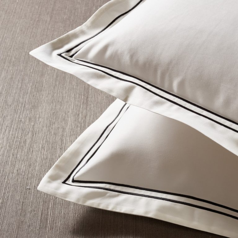 Kelsey hotel style sheeting features 2 rows embroidery on your choice of a base sheet. Simple, perfectly beautiful, and easily a bestseller. With 35+ embroidery colors to choose from, have a customized set made up for every room in your home. Made to order pieces are ready in about 4 weeks.