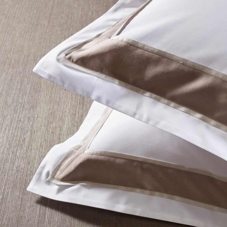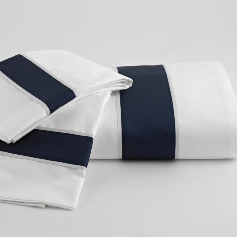 Renata showcases our unparalleled attention to detail with it’s bands of applied sateen. Personalize your set with colors to match your space. Made to order pieces are ready in about 4 weeks.